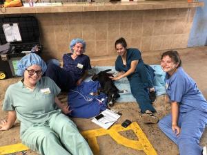 We were up at 5:45 and, as the vets would say, we were all bright, alert, and responsive (well, almost all of us). After a tasty pancake breakfast, we were off for our first day in the clinic. It was amazing to see an old gymnasium transform into a fully functioning surgery suite. Setup took about 20 minutes and then we were assigned our very own patients to follow from intake to recovery, helping and tracking vital signs, calculating medications, and even assisting in surgery.